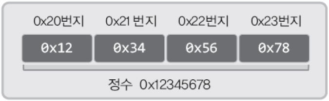 빅 엔디안 : 상위 바이트 값을 작은 번지수에 저장하는 방식