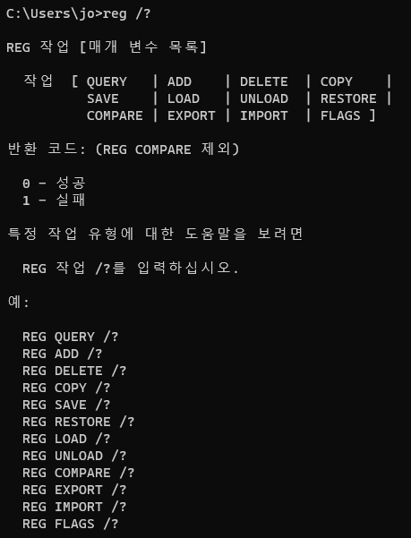 먼저 레지스트리에 등록하는 cmd 명령어는 다음과 같다.