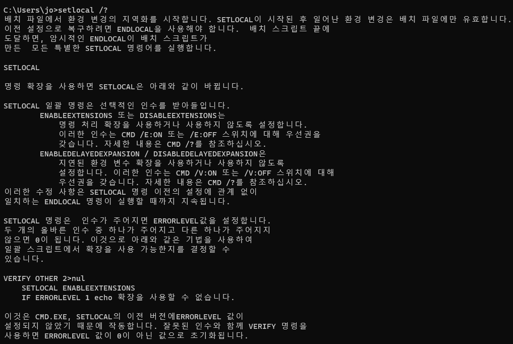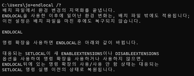 지역변수를 사용하기 위한 setlocal, endlocal 명령어