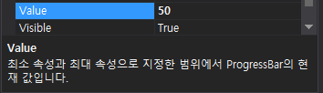 ProgressBar 와 같이 Maximum, Minimum, Value 값이 설정 가능하다.
