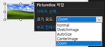 크기 모드에서 Normal / StretchImage / AutoSize / CenterImage / Zoom 중 하나를 선택할 수 있다.