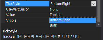 TickStyle 속성을 통해 눈금이 표시될 위치를 설정할 수 있다.