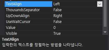 TextAlign, UpDownAlign 을 통해 텍스트와 업다운 단추를 정렬할 수 있다.