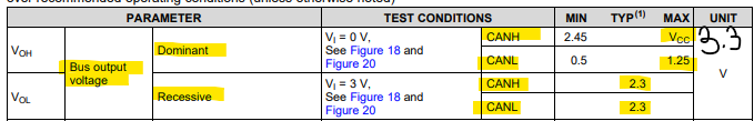| "0" | 3.5V | 1.5V | 2V | Dominant |