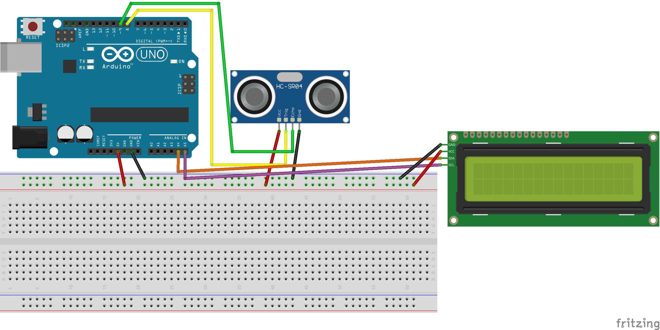 초음파 센서와 I2C LCD 모듈의 자세한 사용방법은 이전 포스팅을 참고해주세요.