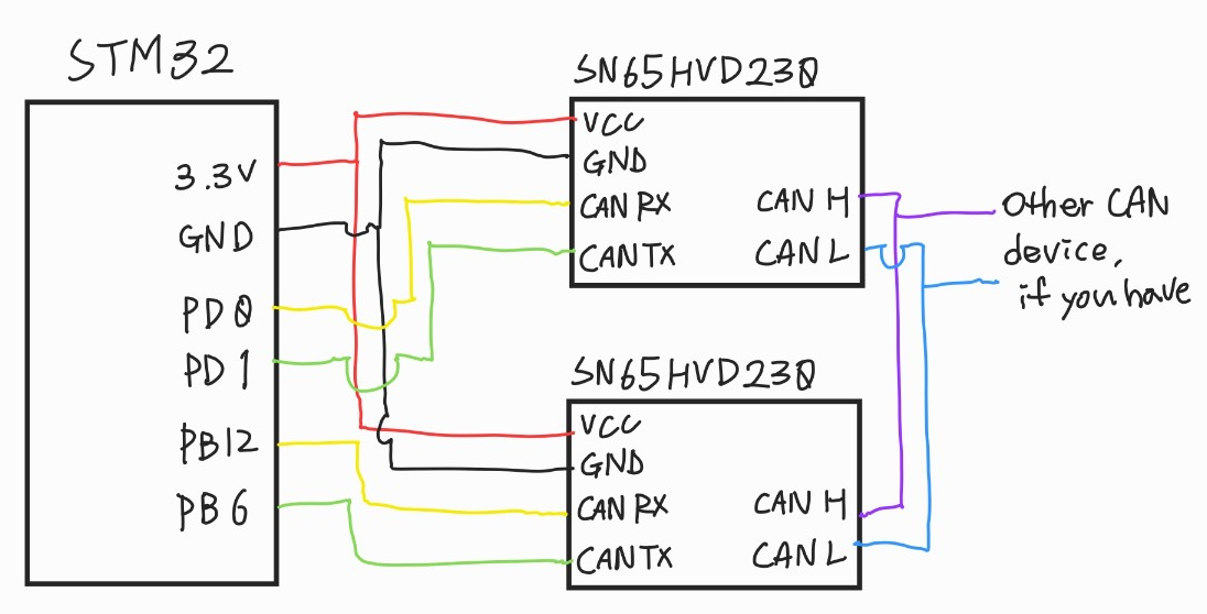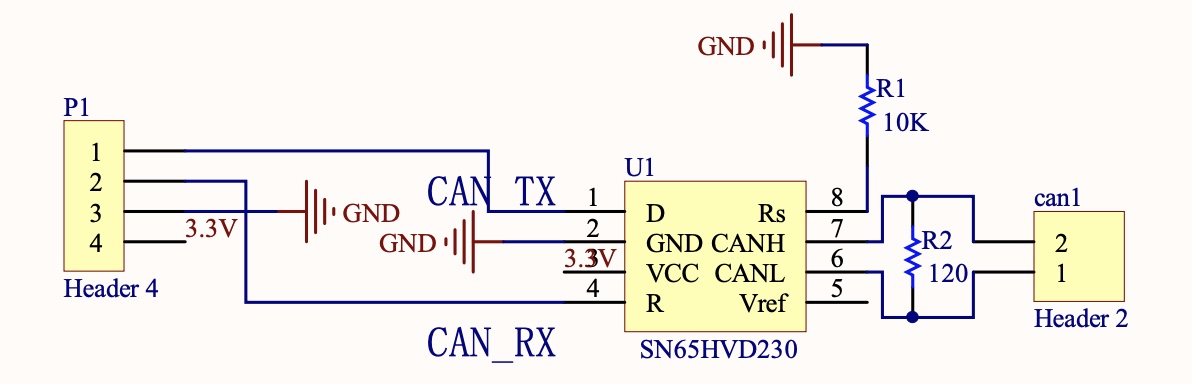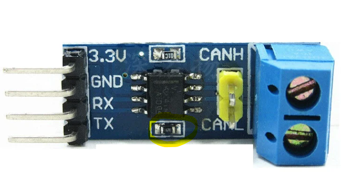 내가 사용한건 SN65HVD230 CAN 트랜시버 모듈이다. CAN1과 CAN2 둘 다 사용하기 위해 모듈을 2개 사용했고, 보통 IC칩이 아니라 이런 모듈을 사면 120옴짜리 저항이 다 붙어서오기때문에 종단저항을 신경쓸 필요가 없다.