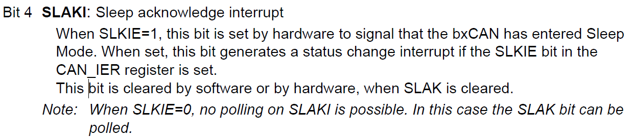 #define CAN_IT_SLEEP_ACK ((uint32_t)CAN_IER_SLKIE) /*!< Sleep acknowledge interrupt */