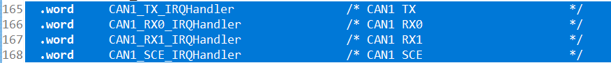 STM32엔 CAN 모듈이 두개에 있으니 Interrupt Vector table 에는 CAN 과 관련된 총 8 IRQ 가 있다.