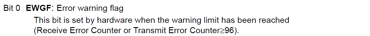 #define CAN_IT_ERROR_WARNING ((uint32_t)CAN_IER_EWGIE) /*!< Error warning interrupt */