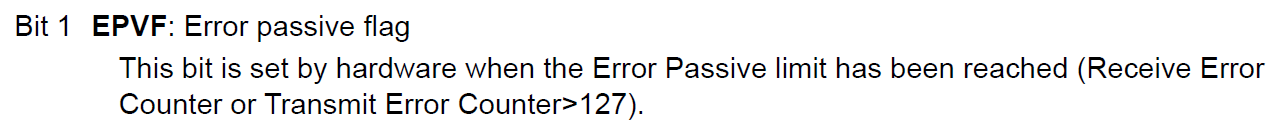 #define CAN_IT_ERROR_PASSIVE ((uint32_t)CAN_IER_EPVIE) /*!< Error passive interrupt */