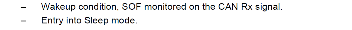 이 외에도 Sleep mode 상태에서 Frame 의 SOF bit 를 감지하면 Wakeup interrupt 를 트리거 할 수 있고, bxCAN 이 Sleep mode 로 들어갈 때도 interrupt 를 트리거하도록 할 수 있다.