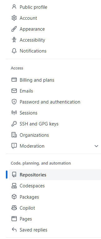 좌측 사이드 바에서 Repositories 클릭