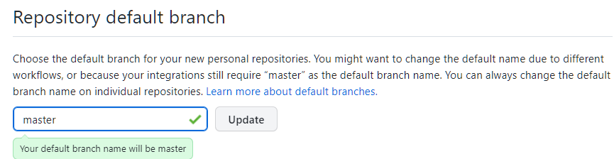 $ git config --global init.defaultBranch master