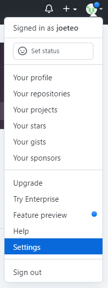 깃허브 우측 상단에서 아이콘 클릭 후 Settings