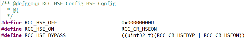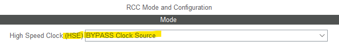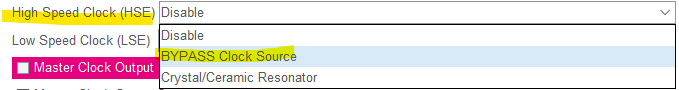 HSE BYPASS는 OSC_IN, OSC_OUT 핀 사이에 crystal oscillator가 안붙어있고, 다른 source를 통해 HSE siganal을 공급하는 것을 말한다.