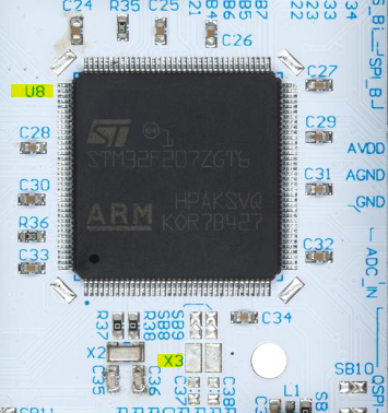 그리고 다시 회로도를 살펴보면 OSC_IN핀에 MCO가 표시된 것을 알수있는데 MCO는 다른 Micro-Controller에서 오는 clock output을 뜻하며 여기서 다른 MCU는 ST-Link에 붙어있는 U2를 의미한다.