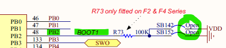 BOOT1핀은 default로 Solder Bridge가 Open된 상태이고 이 때 BOOT1 function은 사용되지 않는다고 한다. 그치만 PB2핀이 CN10을 통해 나와있으니 이 핀을 GND랑 연결해주면된다.