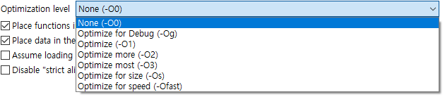 한편 Debug 모드로 실행 시 메모리가 부족하다면 Debug 환경을 방해하지 않을 정도의 최적화를 수행하는 -Og 옵션을 선택할 수도 있다.