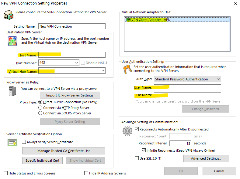 아래 사이트에서 VPN중계서버 목록 중 적당한 서버를 선택한다. (TCP지원 서버로 선택)