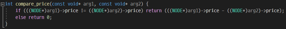 if (arg1->price != arg2->price) return (arg1->price - arg2->price);