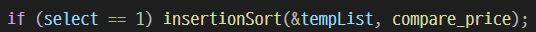 if (select == 1) insertionSort(&tempList, (_comp)compare_price);