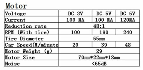 사용한 모터는 DIY용으로 많이 사용하는 기어박스가 장착된 노란 DC모터이다. 스펙은 대강 아래와 같다.
