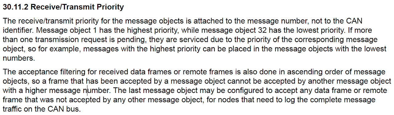 Receive/Transmit Priority, Frame Identifier가 아니라 message object number 낮은 순