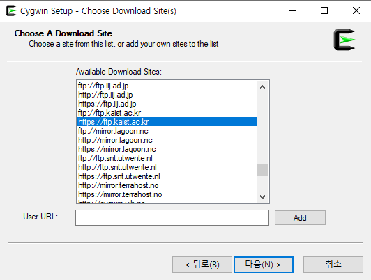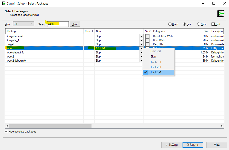 추후 apt-cyg 명령어를 사용해 필요한 패키지를 Cygwin 콘솔에서 설치할 수 있게 하기 위해 wget도 같이 설치해준다.
