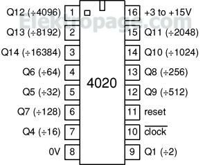 4020칩은 14 bit binary ripple(비동기식) 카운터인데 Frequnecy divider, time delay 의 용도로 사용된다.