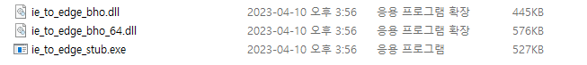 폴더 안에 다음과 같은 파일이 있는데 IE에서 Edge로 자동전환하게 하는 프로그램이다.
