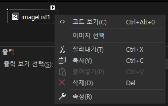 도구상자에서 imageList를 추가하면 하단에 imageList가 나타난다.
