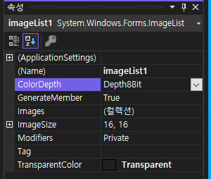 사용시 주의할 점은 imageList를 처음 생성하면 ColorDepth의 초기값이 8Bit이기 때문에 24bit나 32bit로 바꿔주는 것이 좋다.