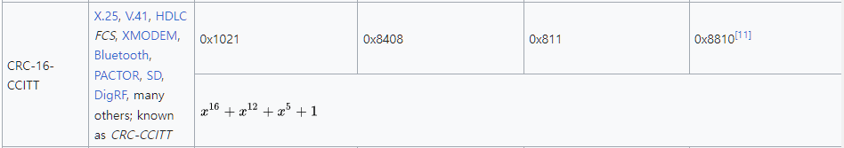 CRC-16/XMODEM은 CRC-16/CCITT-FALSE라고도 불리며, 그 다항식(Polynomial)은 아래와 같다.