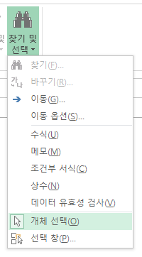 홈 - 찾기 및 선택 - 개체 선택 클릭