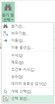 홈 - 찾기 및 선택 - 선택 창