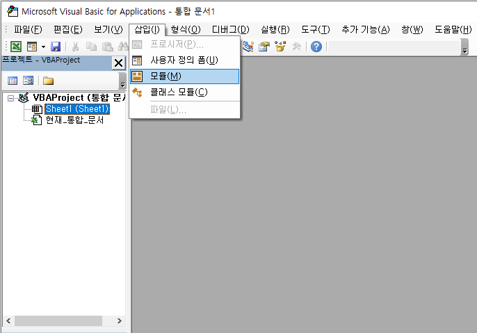 1. 단축키 ALT + F11 을 눌러 Visual Basic을 연다.