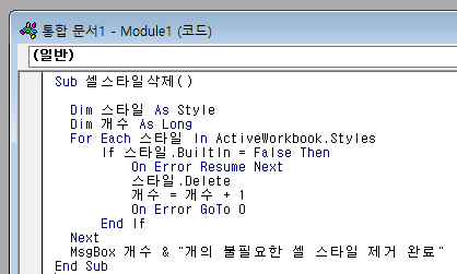 MsgBox 개수 & "개의 불필요한 셀 스타일 제거 완료"