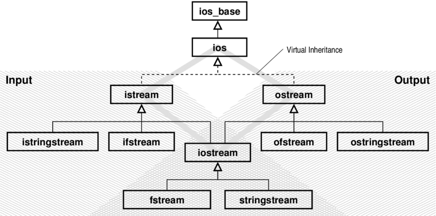 - ios : ios_base 클래스를 상속하며, 입출력 스트림의 상태와 플래그를 조작할 수 있는 멤버 함수를 제공