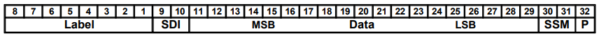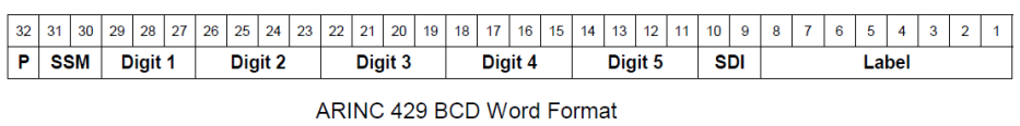 ARINC 429 의 data words 는 일반적으로 아래의 5개의 필드로 구성된 32 bit words이다.