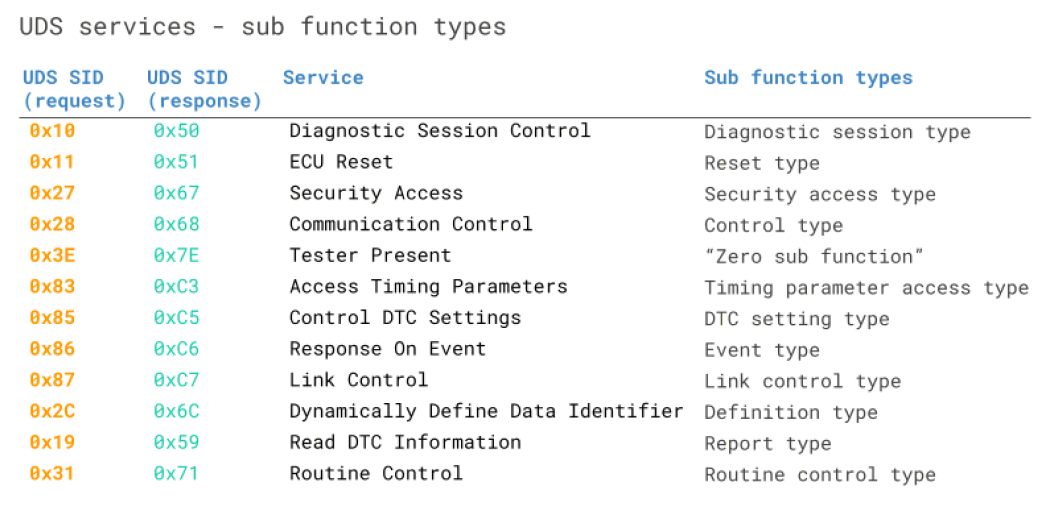 UDS SID 목록 : https://en.wikipedia.org/wiki/Unified_Diagnostic_Services