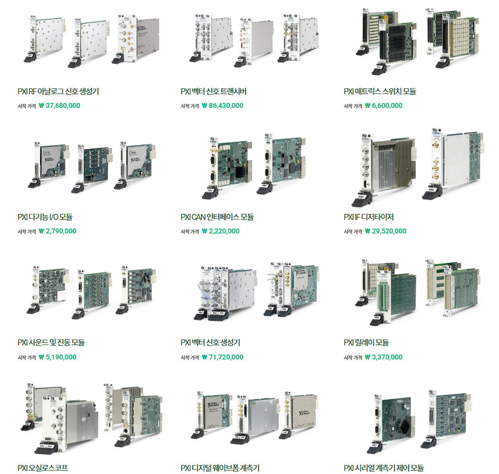 - Peripheral Modules(주변 모듈): 일반 PC의 PCI(e) 주변 장치와 동일한 역할을 하며, 다양한 계측 및 자동화 기능을 수행하는 모듈이다.