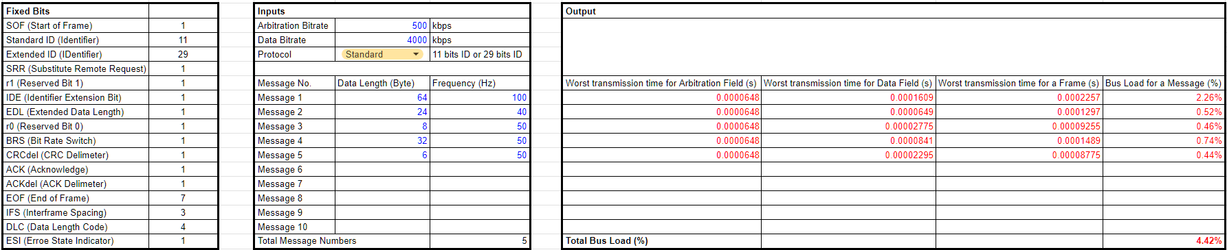 CAN FD Bus Load Calculator