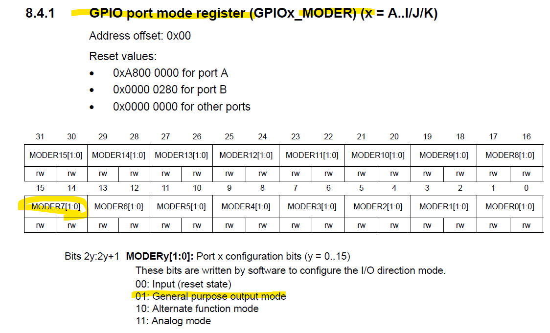 그런데 우리가 궁금한건 GPIOB 7번핀. MODER7