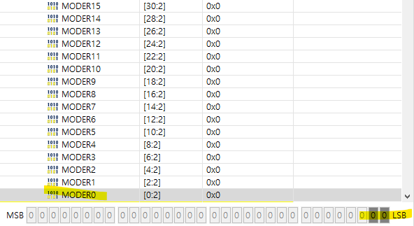 MODER0이 최하위 비트 LSB