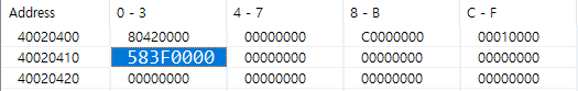 SFRs에서 보면 0x3f58 값을 가진다.