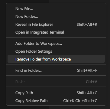 혹은 작업영역에서 폴더 삭제 후 재오픈
