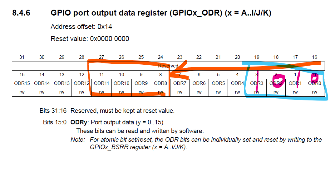 GPIOD->MODER |= 0x00001555; // set PD0,1,2,3,4,5,6 to output mode