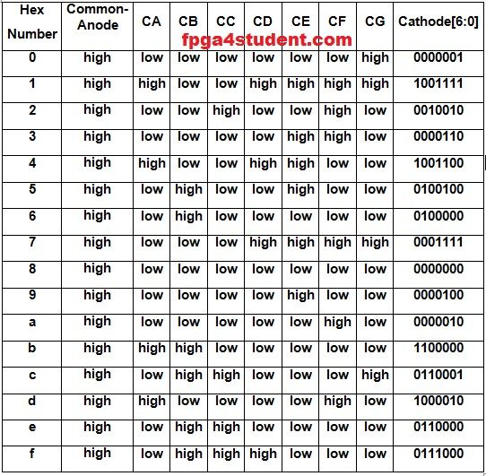 0-15까지의 숫자를 받아서 7 segment FND에 출력하기 위한 신호로 리턴해준다.