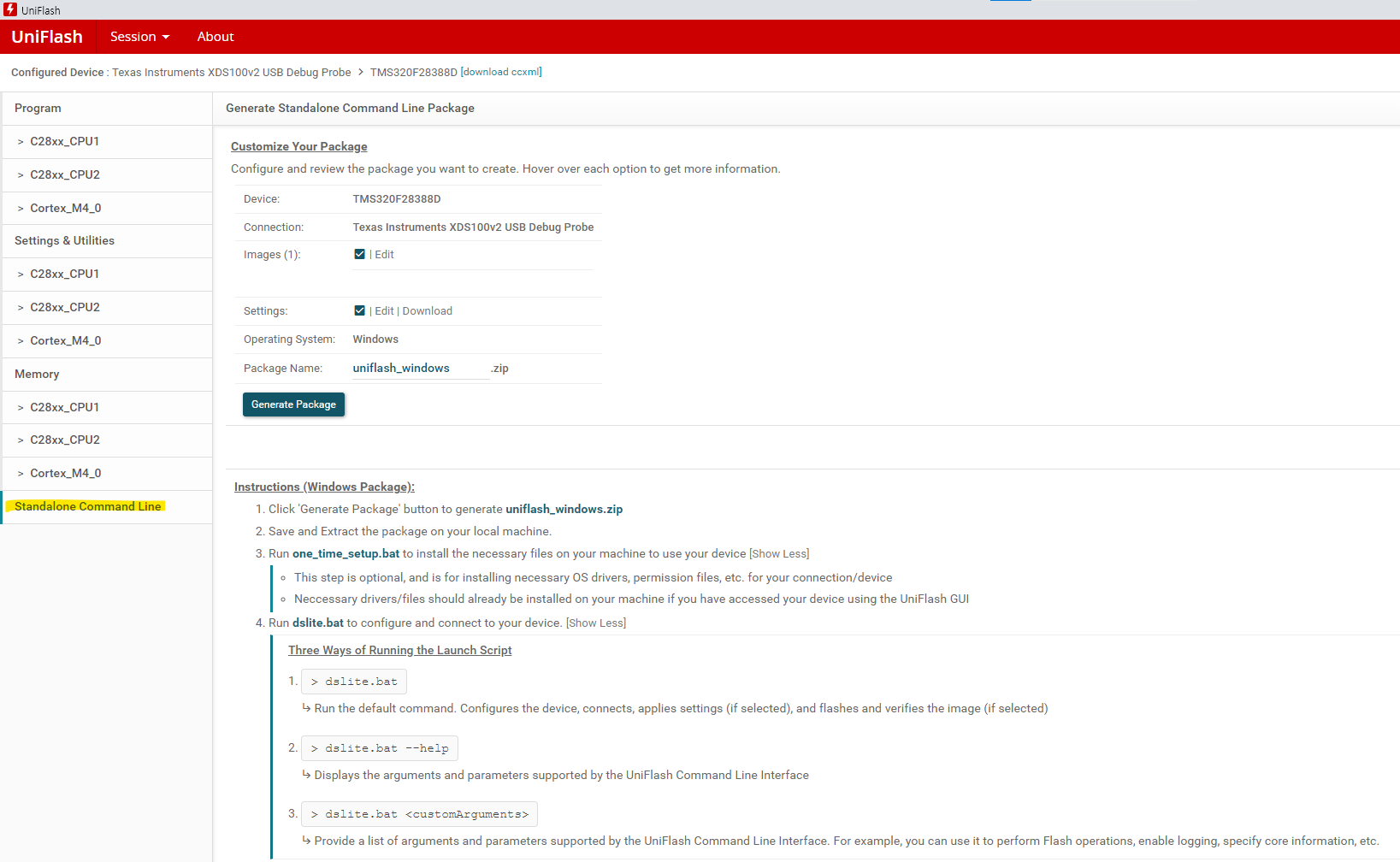 한 번의 클릭으로 위의 작업을 수행할 수 있는 툴을 만들고 싶다면, 좌측의 Standalone Command Line을 클릭하고 Generate Package를 통해 다운받는다.