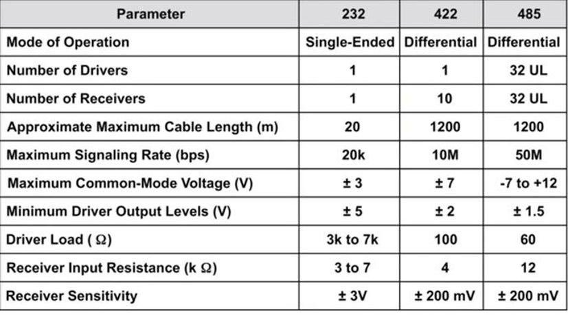 RS-232 vs RS-422 vs RS-485 비교